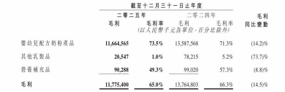 但总的来看,转型仍在培育期。2025年,包含成人奶粉、液态奶、米粉辅食在内的其他乳制品收入同比增36.1%至20.6亿元,毛利率为1%。